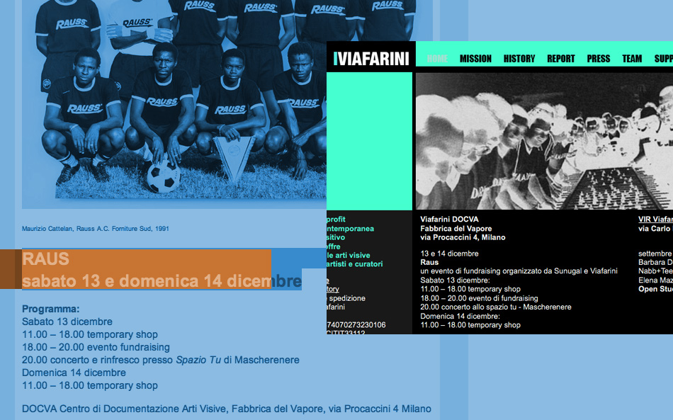 I’m also happy to say that we succeeded with the Raus project: during the last weekend we collected through a temporary store at DOCVA Viafarini the necessary amount of money to ship a lot textile material to a tailor school close to Dakar/Senegal. Around 30 heavy boxes full of different kind of fabrics was donated by the deceased aunt of Antonio – a real gentleman from the suburbs of Milano. He drives a diy customized jeans jeep: contact him if you need any kind of prints or any digital arty cool tech touch.