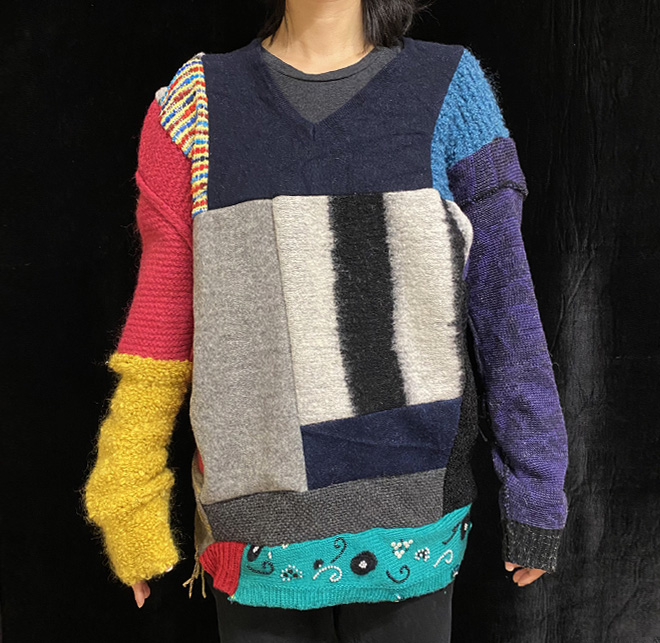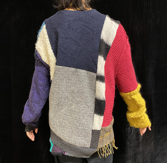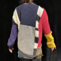 WNG.355 Hand-hassembled collage from different second-hand pullovers. Always kindly and one of a kind, from 2010: the Wings serie. Unisex size (S/M). NOT AVAILABLE 0.00 euro - < Back to Shop