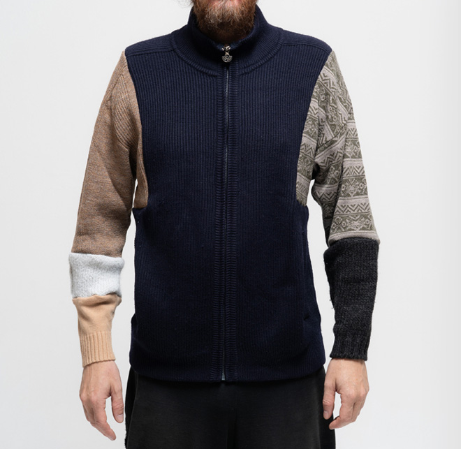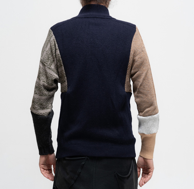 WNG.437 Hand-hassembled collage from different second-hand pullovers. Always kindly and one of a kind, from 2010: the Wings serie. Unisex size (L). One size 130.00 euro Size : One Size < Back to Shop