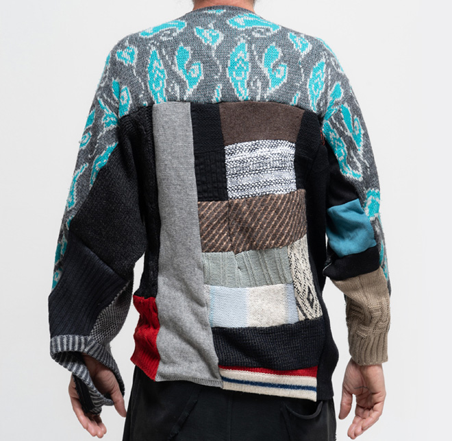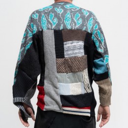 WNG.448 Hand-hassembled collage from different second-hand pullovers. Always kindly and one of a kind, from 2010: the Wings serie. Unisex size (L/XL). One size 130.00 euro Size : One Size < Back to Shop