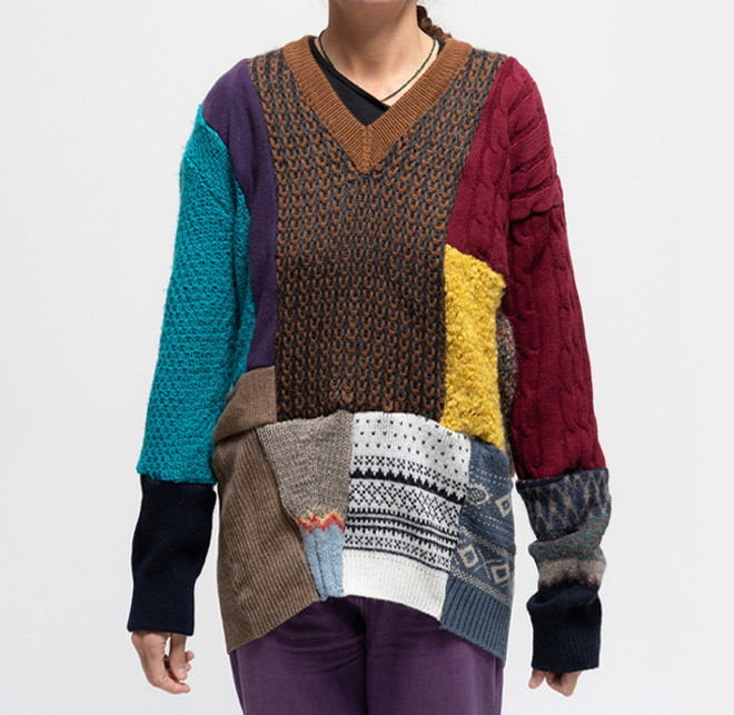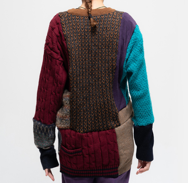 WNG.456 Hand-hassembled collage from different second-hand pullovers. Always kindly and one of a kind, from 2010: the Wings serie. Unisex size (S/M). One size 130.00 euro Size : One Size < Back to Shop